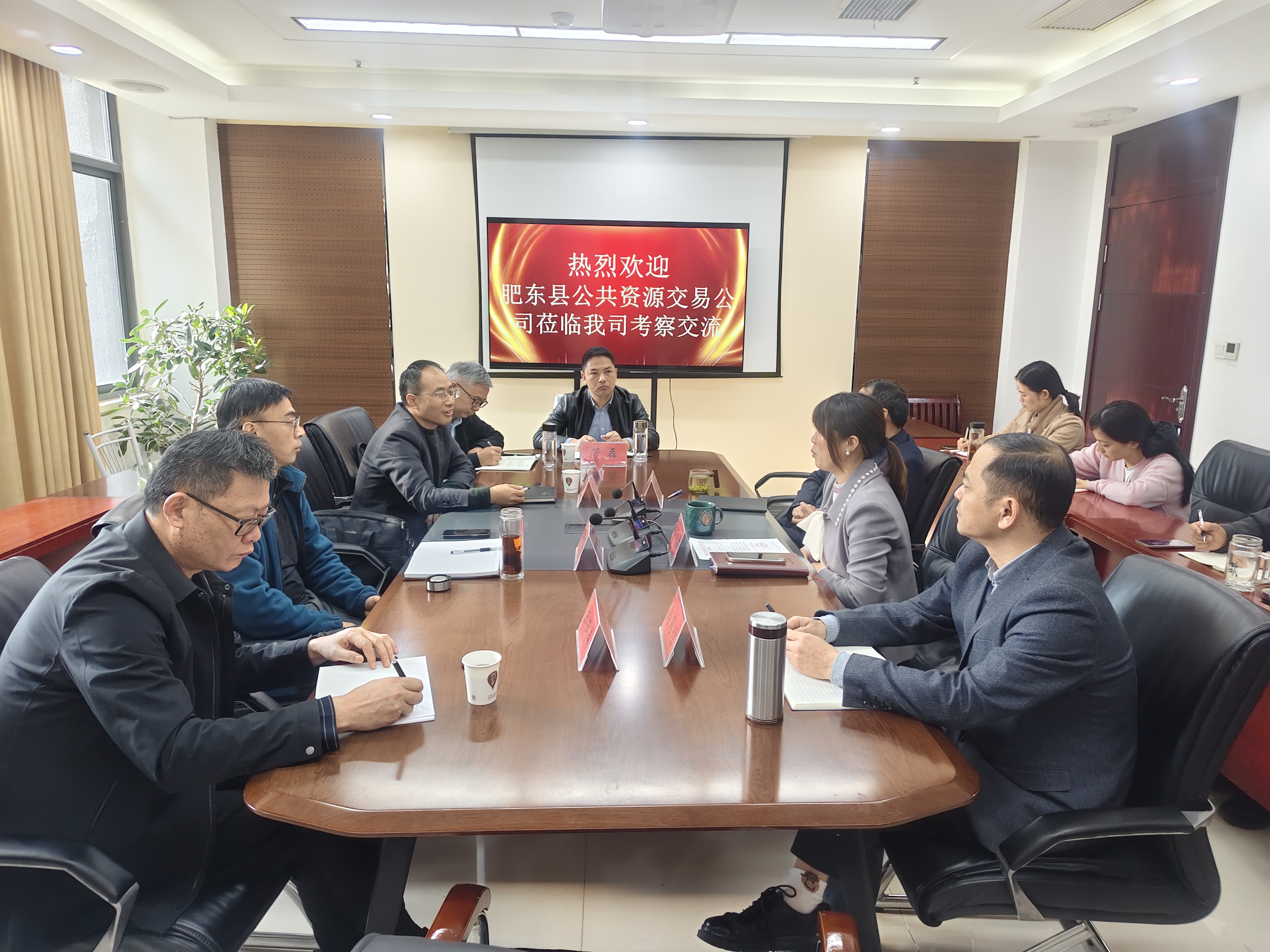 11月12日,肥東縣公共資源交易公司董事長陳愛國一行來肥西交易公司考察交流。肥西交易公司領導班子成員及科部負責人參加座談交流。